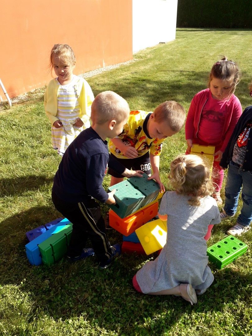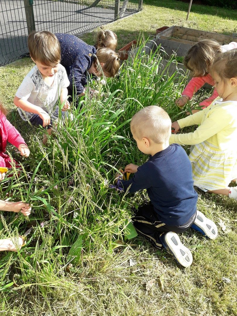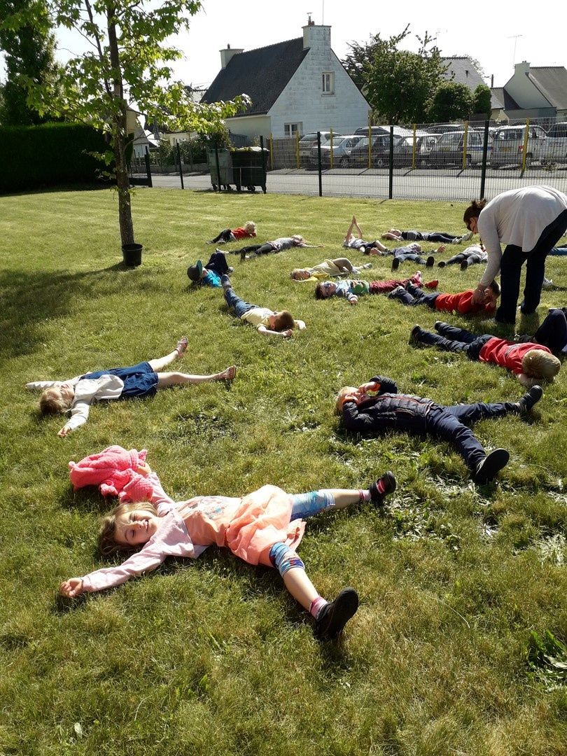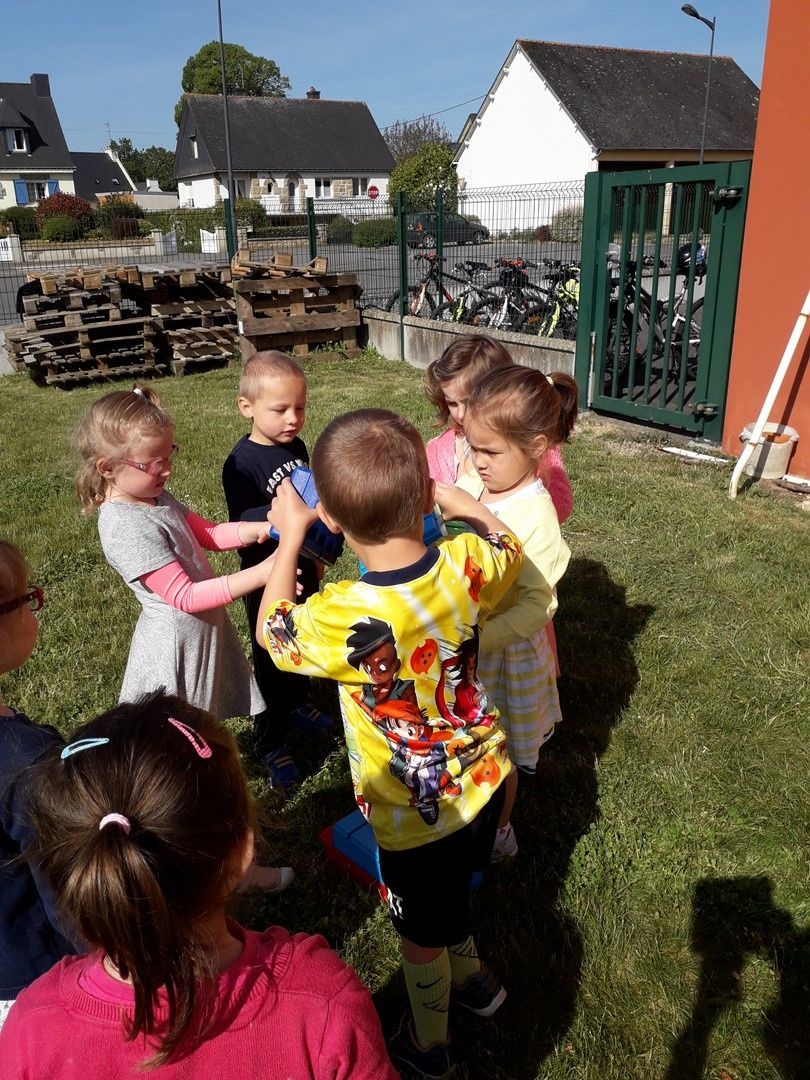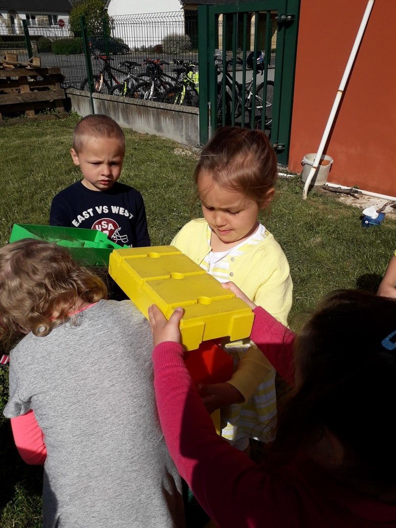 Vendredi 18 mai, les élèves de PS MS ont participé à la journée école en plein air. Tous les ateliers de la journée se sont donc déroulés dehors. (ex: grandeurs et mesures mathématiques en fabricant la tour la plus haute possible, motricité fine en coupant des fleurs et de l'herbe dans le potager, ateliers d'écoute et de relaxation sur la nature, motricité en utilisant tout l'espace vert pour courir et se repérer selon une consigne.....) Une expérience à refaire!